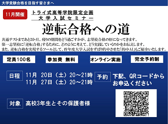 一般入試を控える高校3年生のみなさんは、ぜひご参加ください!