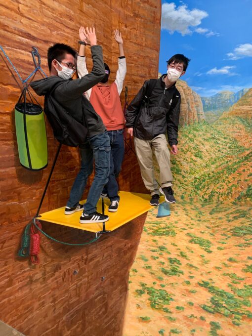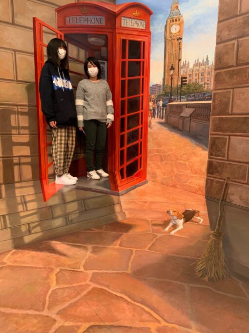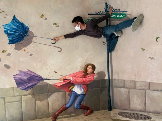 見る位置や角度によって見え方も変わり、離れてみるとより立体的に見えるトリックアート!!