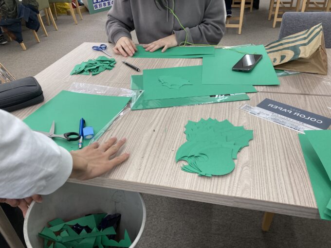 そこで今日は、参加者の方がやりやすいようにツリーの葉っぱをカットしていきました。