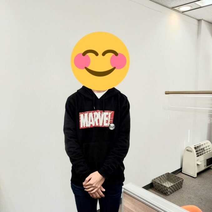 京橋キャンパスに通学するH君。