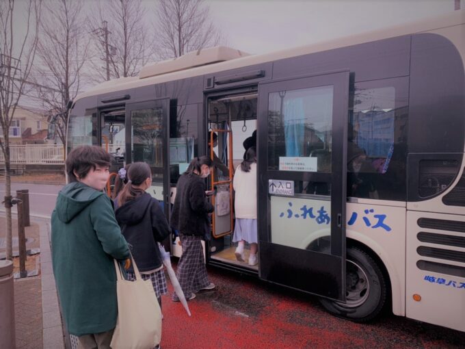 電車に乗り、バスへ乗り継ぎ到着!