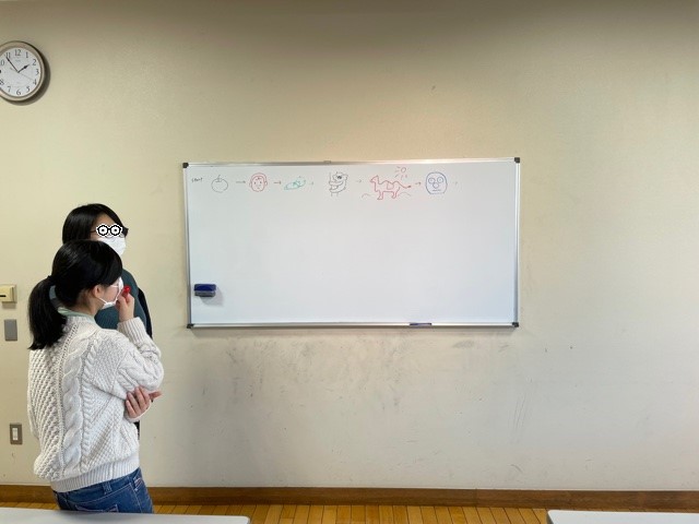 ホワイトボードを使って楽しく絵しりとりを行いました!