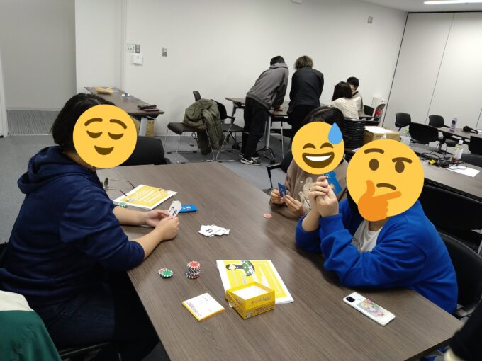こちらはカードを使ったしりとりで、普通のしりとりよりも縛りが多く、とても難しいのですが、実行委員のKさんは多彩な語彙力を存分に発揮し、ゲームを盛り上げておりました!