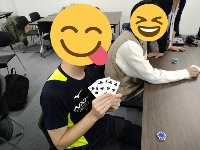 最後は石花キャンパス長がディーラーを務めていたポーカーです!