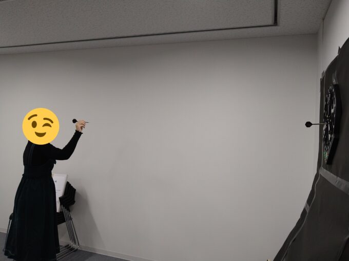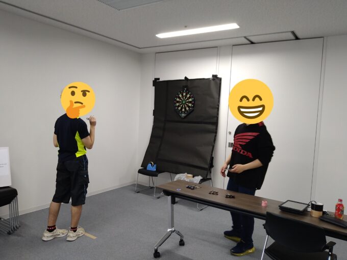 またダーツボードの後ろにある黒いものは実行委員のみんなが案を出し合い、壁を傷つけないための考えた策です。