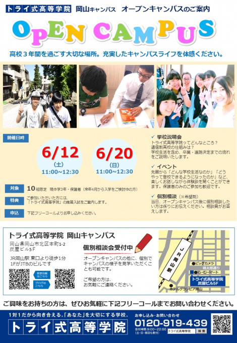 ブログをご覧の皆さん、こんにちは。 トライ式高等学院岡山キャンパスです。 街路樹の緑も日に日に鮮やかさを増し・・・