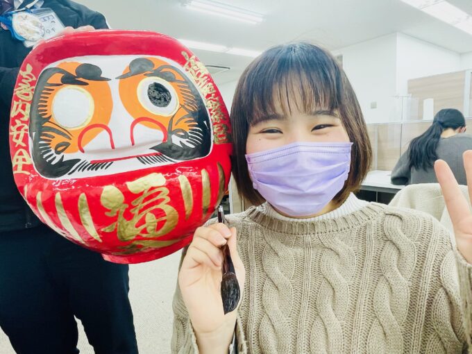 だるまは願いを込めて片目を入れ 願いが叶ったらもう片方の目を入れます