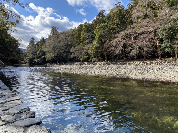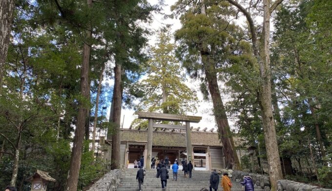 五十鈴川を眺め、本殿でお参りし、おはらい町では1時間ほどの自由行動をしました。