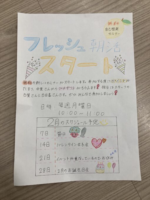 みなさん、こんにちは♪ 通信制高校サポート校のトライ式高等学院 千種キャンパスです。 2月から新しい無料の講座がスタートします! 毎週月曜日の朝10時~11時に開催するフレ・・・