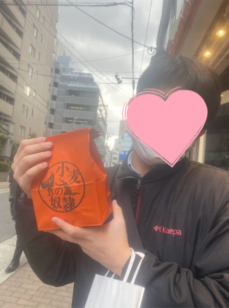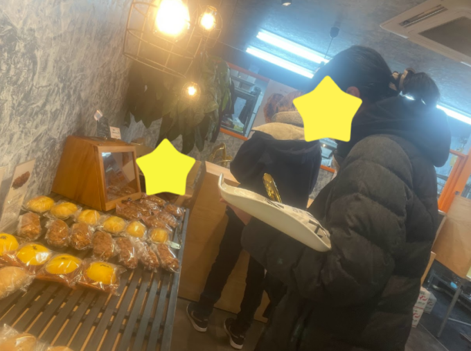 美味しそうなパン屋さんがあったので皆で寄り道しました。