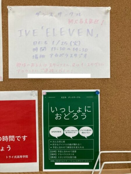 キャンパス掲示板には生徒が作った