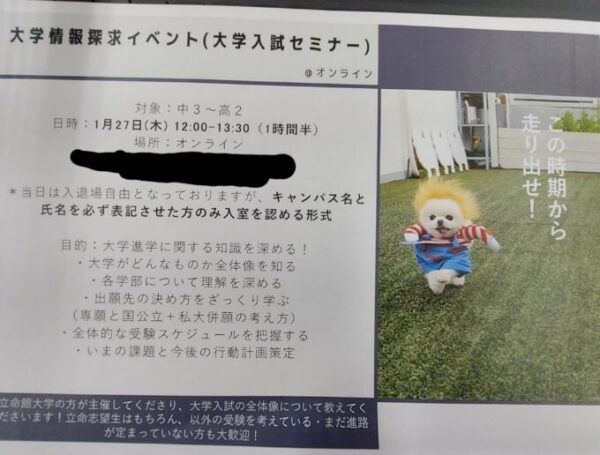 今回のブログは、大学入試セミナーのお知らせブログとなります。