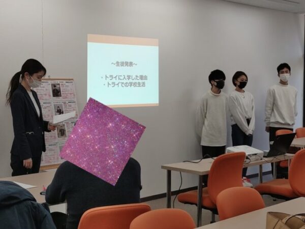 壁に映し出されたスライドショーを使って生徒が説明してくれたり、浦和キャンパスについてどんなところなのか雰囲気なのか教えてくれたり、とても実りある時間でしたね★