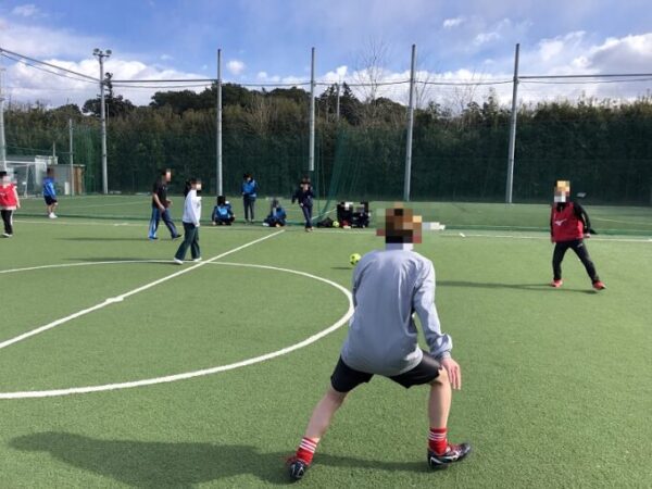 キャンパスを離れて、ほど近いところにある人工芝のフットサルコートに集合。
