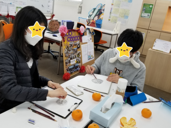 思い思いのミカンを描きあげていきます!