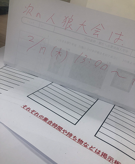 先日開催した第1回人狼大会ですが、好評につき第2回の開催が決定しました!!