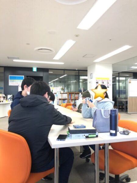 写真は、ランチ後のキャンパスの日常☆彡この日は、トランプの大富豪で盛り上がっていました。