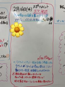 キャンパス内のホワイトボードにて出欠確認を取っています!出欠期限は15日までです。