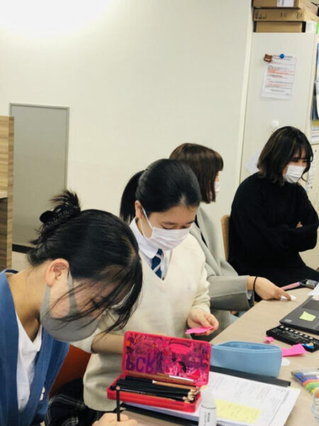 最後に、高校3年生を送る会や卒業式で使用するメッセージカードの作成をしました。