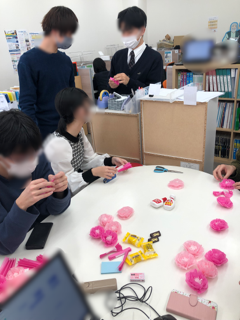皆でおしゃべりしながら花飾りを作りました(^-^)