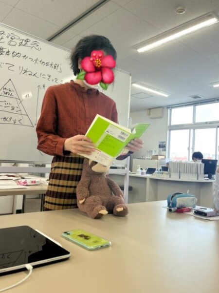 テキストを使って、各章ごと担当を決めて授業形式で勉強を進めていきます♩
