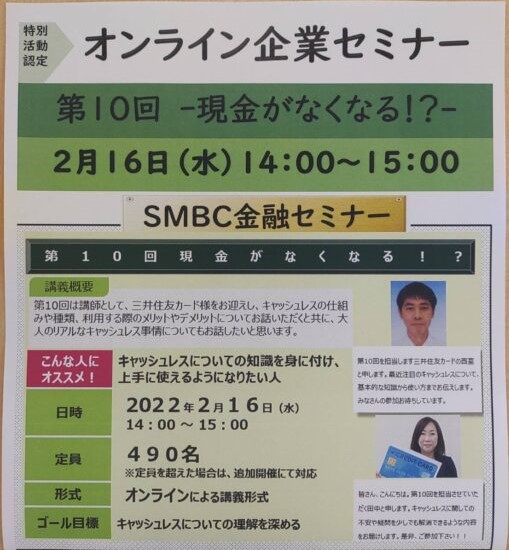本日はオンライン企業セミナーのご案内です☆彡