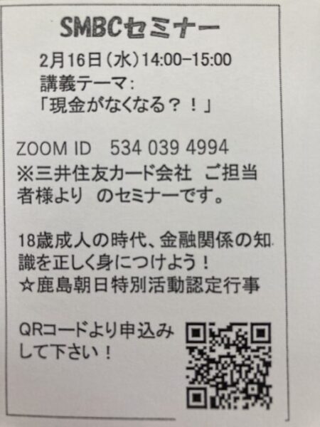 こちらのオンライン企業セミナーは、鹿島朝日特別活動認定行事にカウントされます。