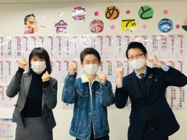 しかし、担当B先生と二人三脚で頑張り見事大学合格を果たしました。