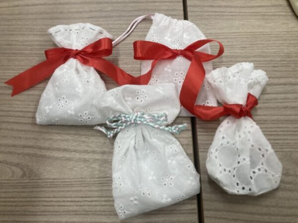 まずは、手ぬぐいを使って小さな袋を作るところからスタート!
