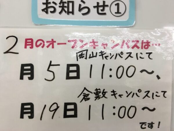 次回は2月19日(土)11:00~倉敷キャンパスにて行います!