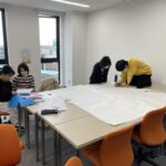 折り紙で建材をつくり、テトラ形をベースにジョイントを考え、仲間と共働で立体化していく活動です。