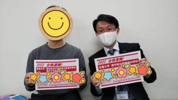 合格発表当日の午後、釣り道具を手にキャンパスに寄って直接報告してくれました!