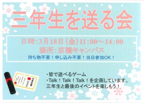 今回のブログは、そんな三年生との最後のイベント「三年生を送る会」のお知らせです!