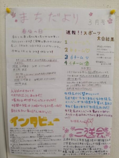 生徒会で作成している町田キャンパスの新聞、『まちだより』の3月号ができました!