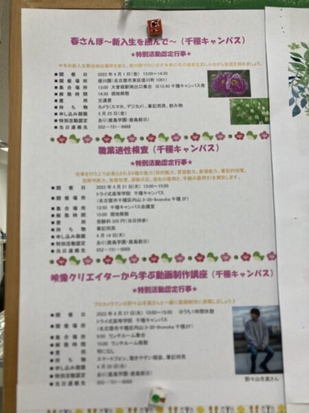 ご不明点などありましたら、千種キャンパスまで気軽にご連絡ください。