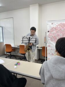 教室に響くサックスの音、みんな真剣に聴いていました✨