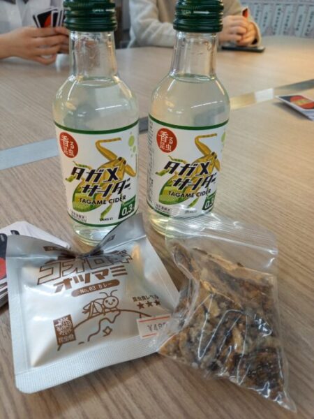 タガメサイダーはふつうに美味しい!コオロギはパサパサしていますが、カレー味なので全く問題なし!
