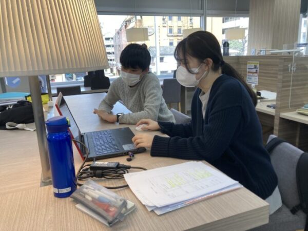 現在、千種キャンパスの新入生歓迎会実行委員会のメンバー4名は