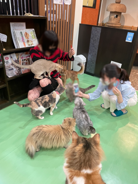 それぞれが推しの猫ちゃんを見つけ、おもちゃで引きつけたり、