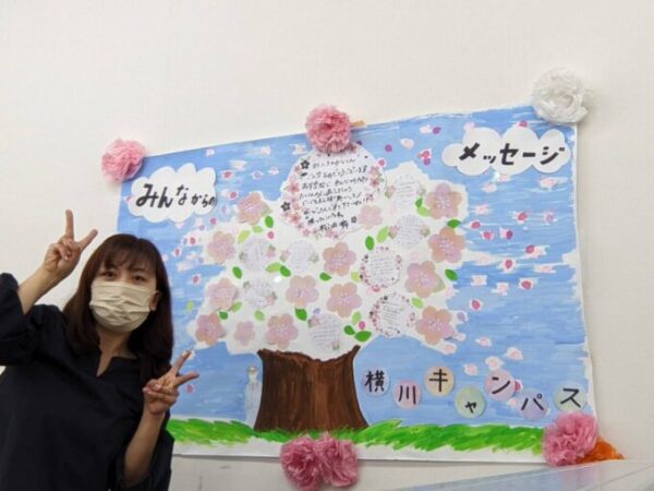 横川キャンパスにも在校生や先生方からお祝いのことばをもらっていますので、よければ見てみてくださいね。