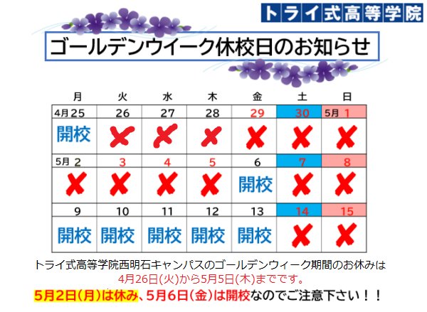 4/26~5/5まで林間学校&ゴールデンウィークで