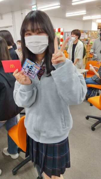ビンゴゲームでは、図書券・クオカード・マックカード など