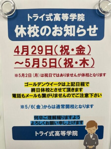 ゴールデンウイーク休校となります!!