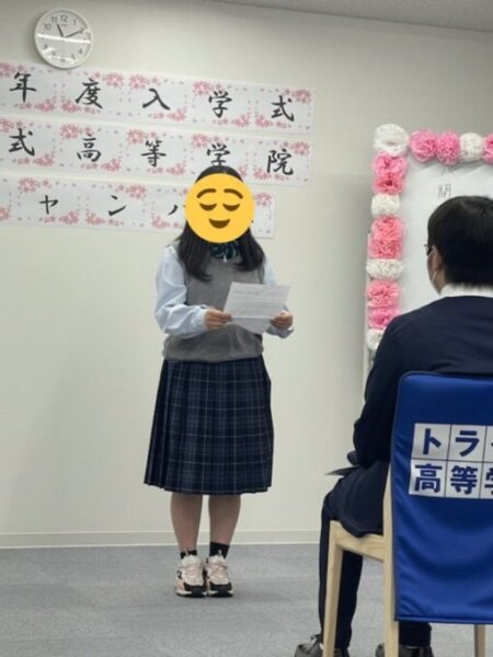 式の際にあった在校生代表の挨拶も、Iさんが自分のキャンパスでの生活や感じていることをしっかりまとめてくれ、聞いていてこれからの高校生活が楽しみになるような内容でとても素晴らしいものでした!