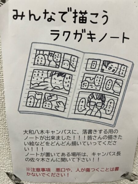 そんな時には大和八木キャンパスにおいてあるラクガキノートにラクガキをしましょう‼
