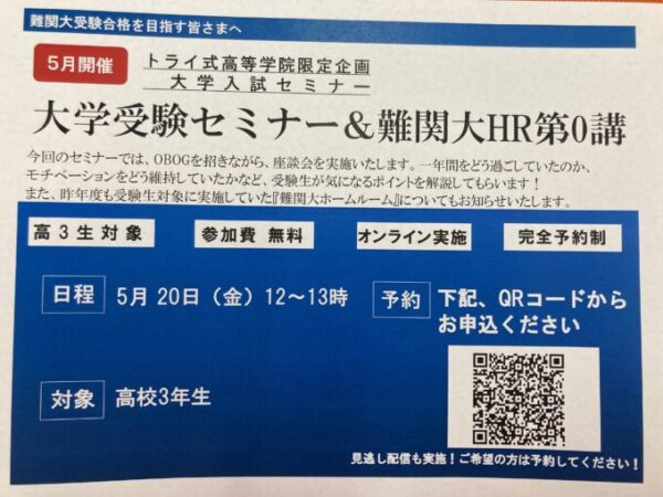 トライ式高等学院だけの、限定企画「大学入試セミナー&難関大HR大0講」が今年も開催されます★