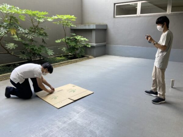 段ボールで椅子やスリッパを作るアイディアを動画撮影&編集してSNSに投稿していきます。