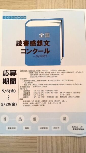 毎年開催しているトライ式高等学院の読書感想文コンクール~高3の部~に