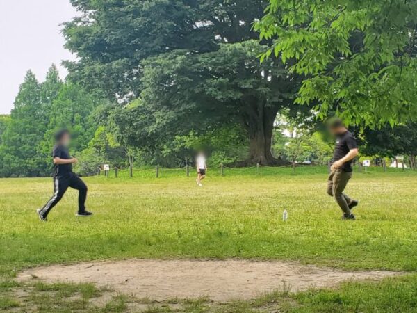 公園の広場でキャッチボールや、ビーチフラッグ(ペットボトルver.)、缶蹴りなどをしました!