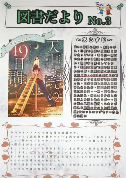 今月で、3枚目の図書だよりになります。